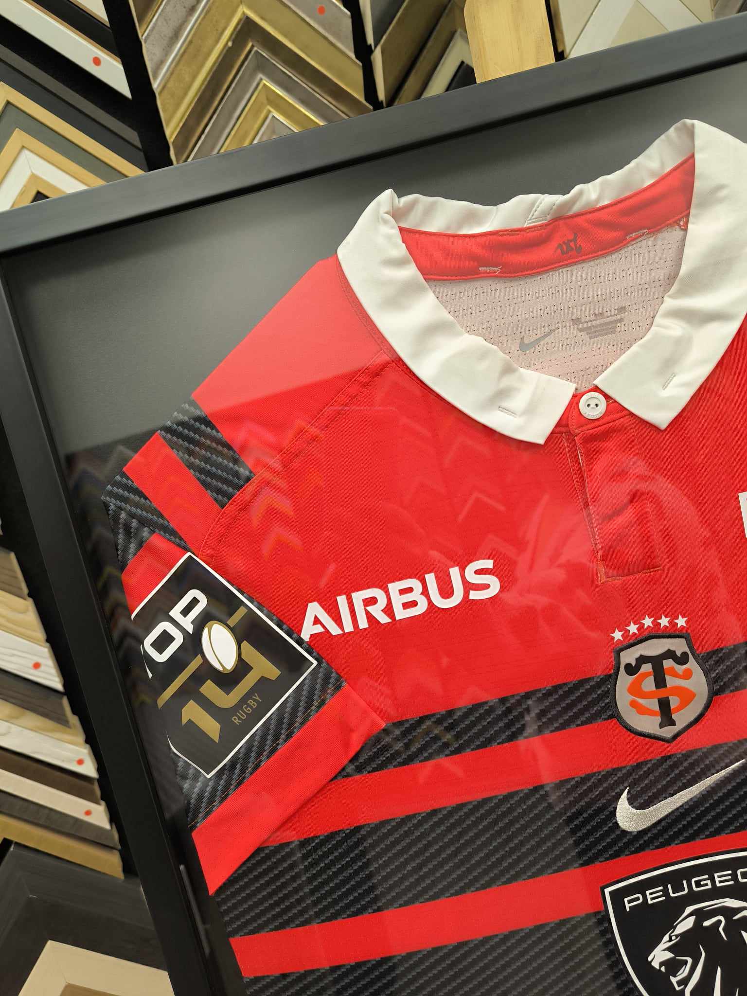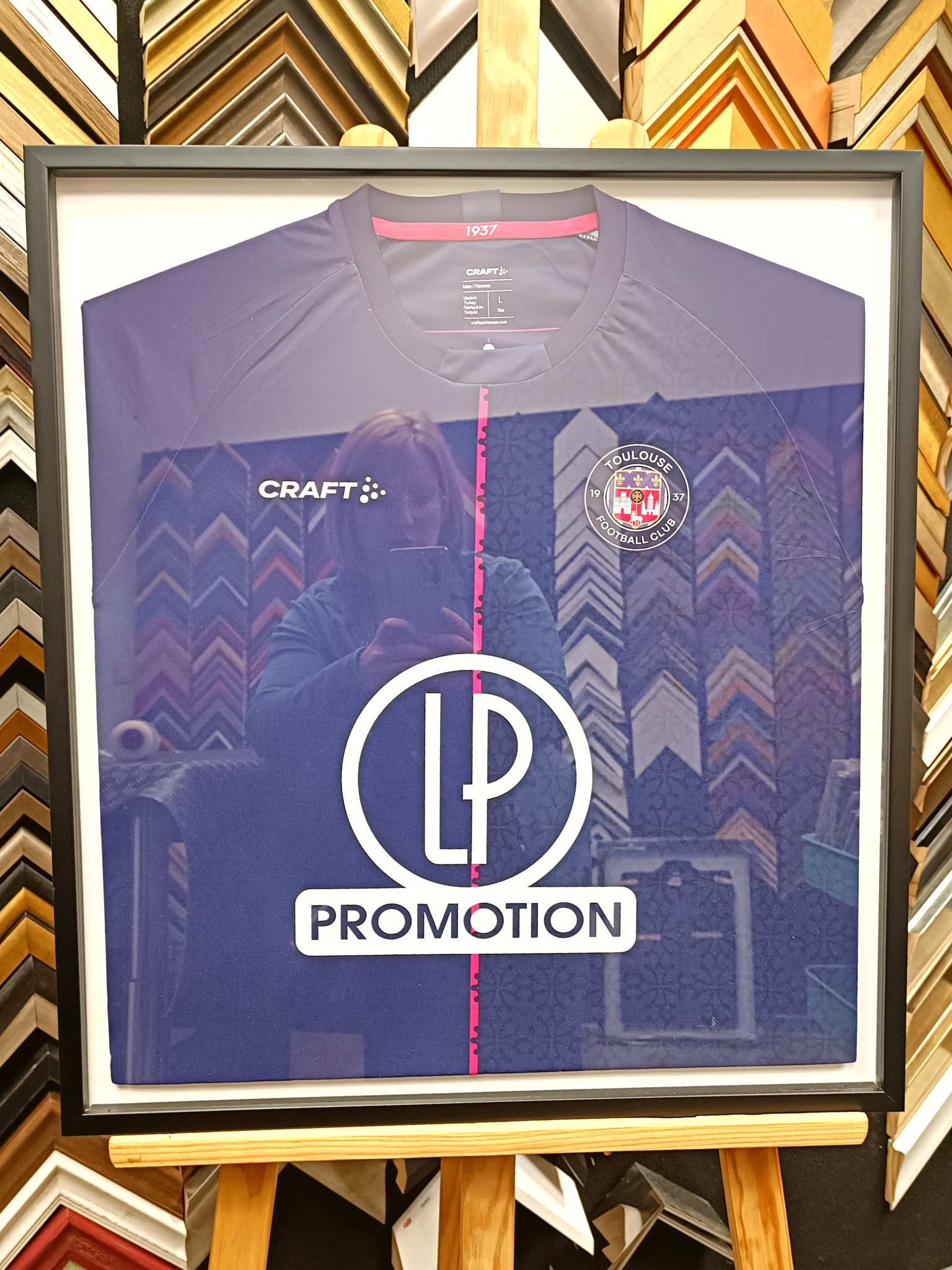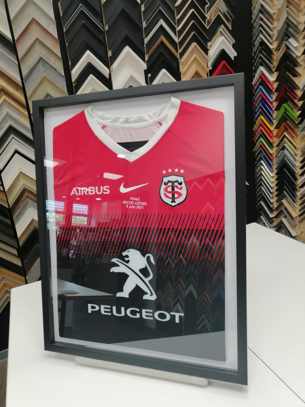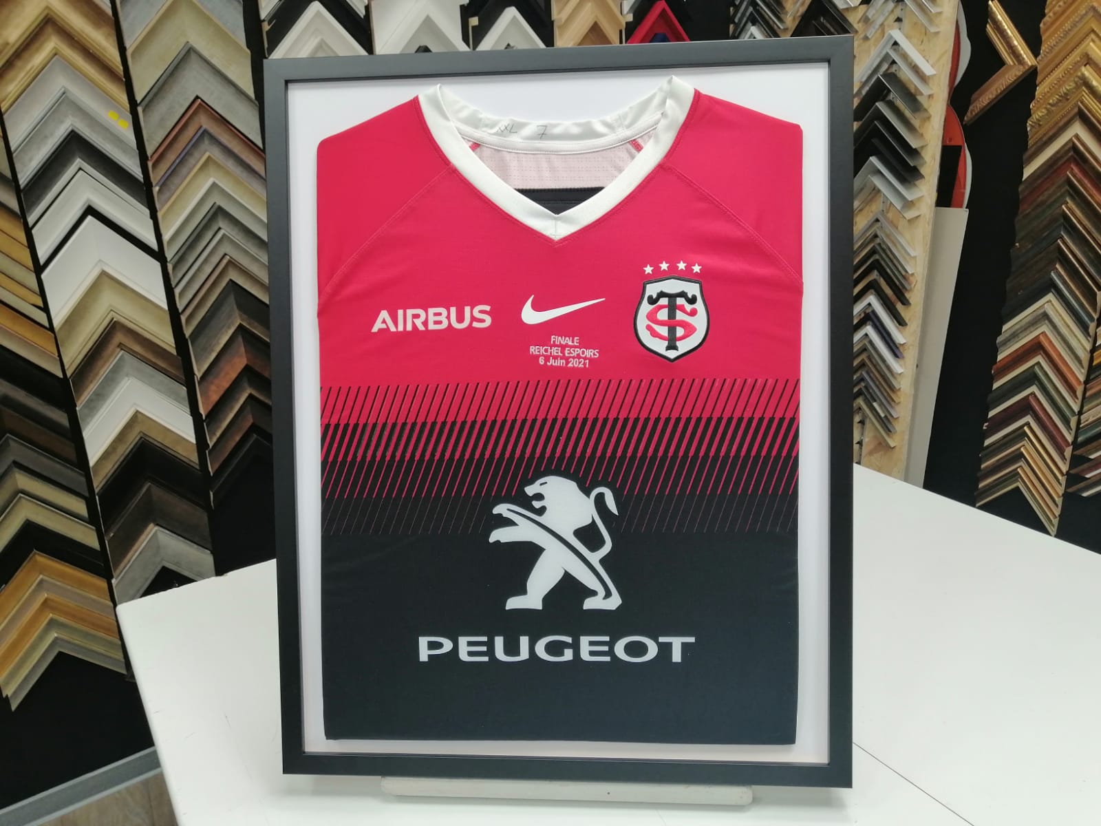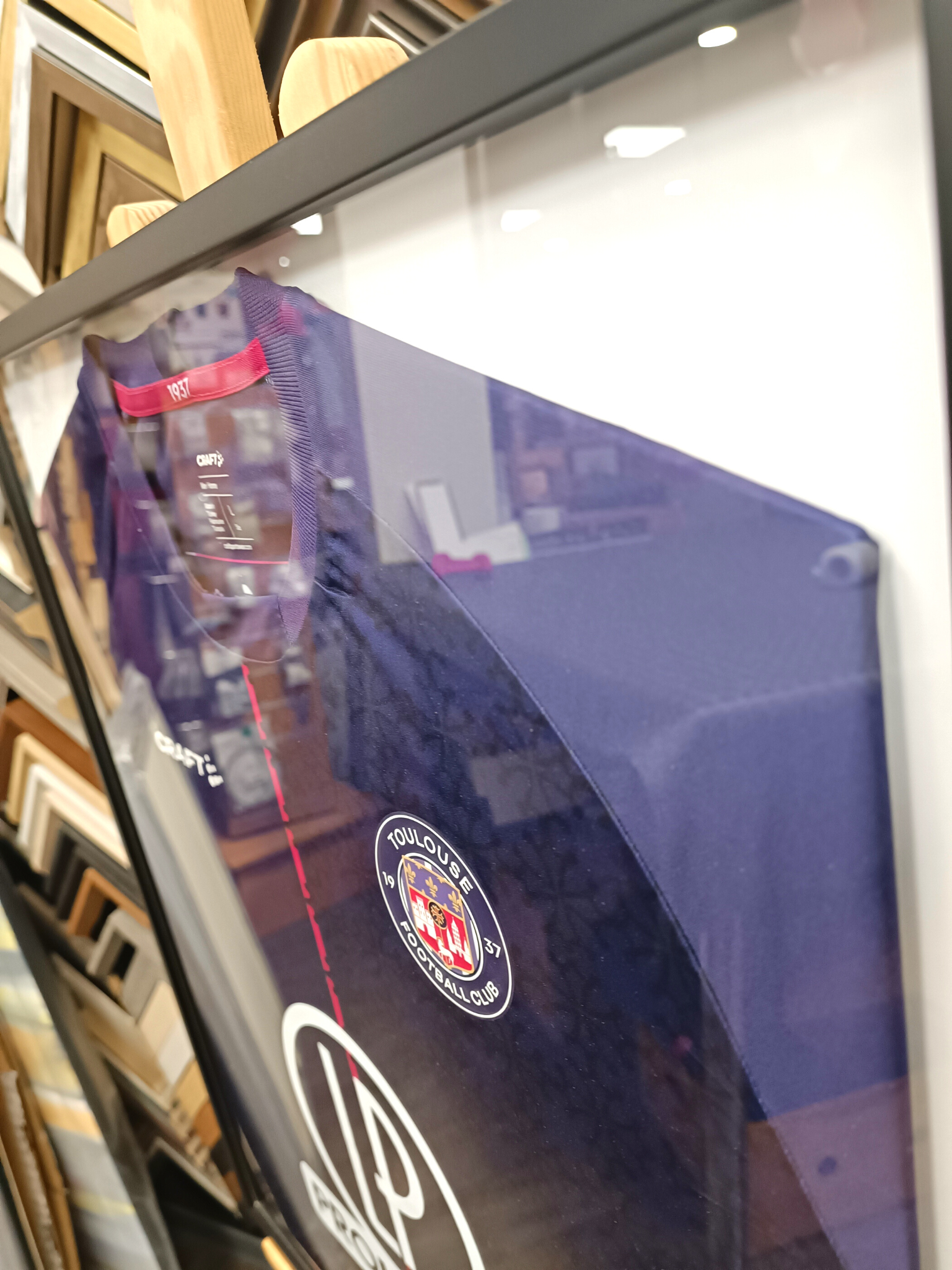 Tous nos encadrements sont fait sur place dans notre atelier à Colomiers. L'encadrement des maillots sportifs ou de tout autre matière textile, est fait sans agrafes ni colles ni découpage. Tout est fait pour que vous puissiez un jour récupérer votre maillot.